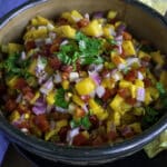 I like to serve my mango salsa with black bean tacos or with paneer tacos.